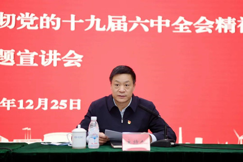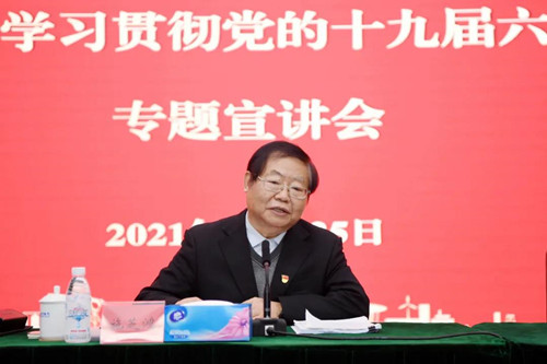 施芝鸿紧紧围绕学习习近平总书记重要讲话和党的十九届六中全会作出的《决议》,围绕深刻认识和把握党中央对党的十九届六中全会议题的考虑和对起草此次《决议》的明确要求,对《决议》顶层设计相关的十个重大问题及其精髓要义进行了深入阐释和系统讲解。