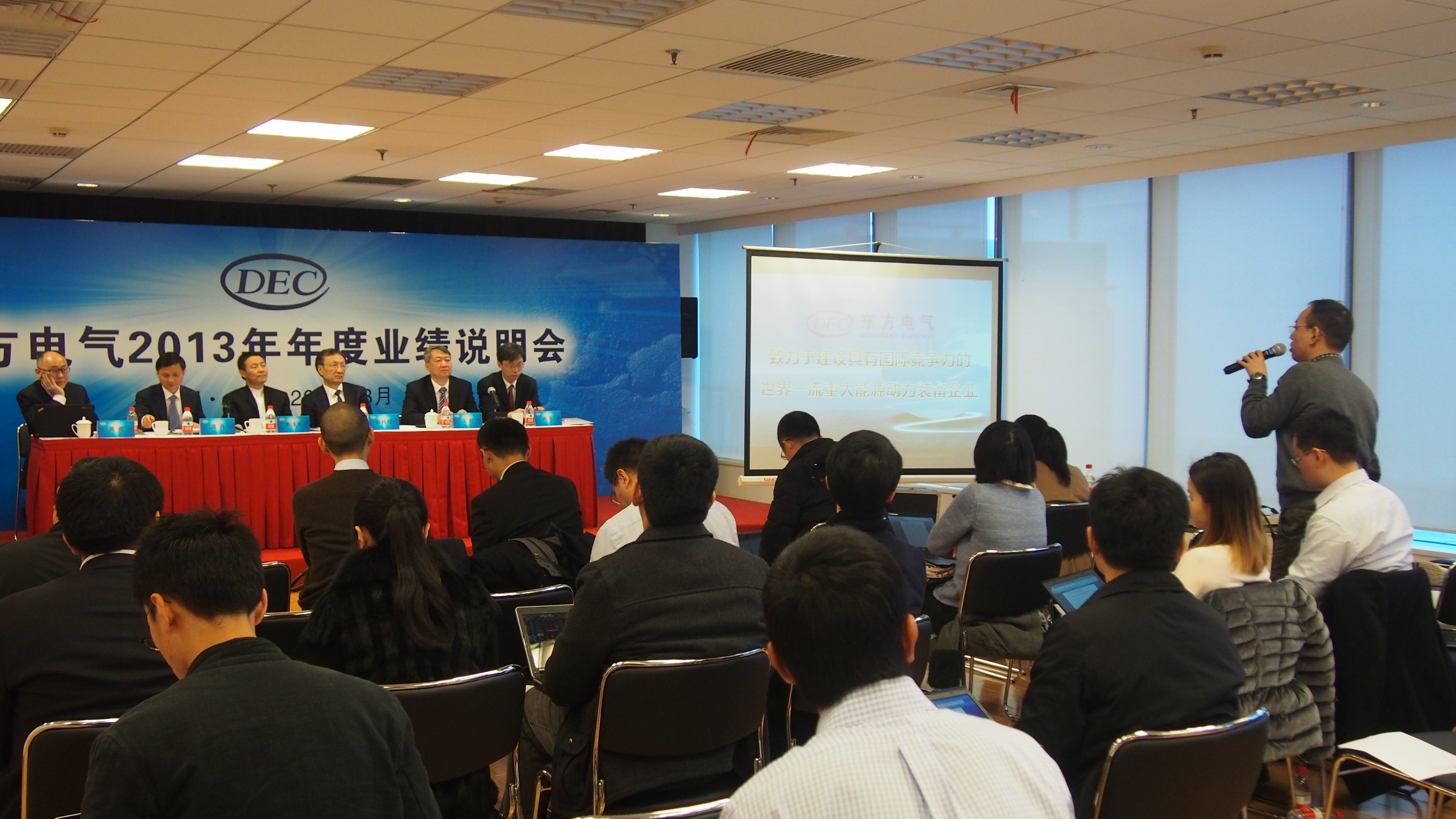 2014312日,股份公司在内地和香港同时披露了《2013年度报告》。股份公司董事长斯泽夫率队在披露年报的当天在上海举行公司2013年度业绩说明会,随队参加业绩说明会有股份公司总会、董秘龚丹、董办主任黄勇、核电事业部总经理王宏、风电事业部总经理陈军以及公司独立董事赵纯均。