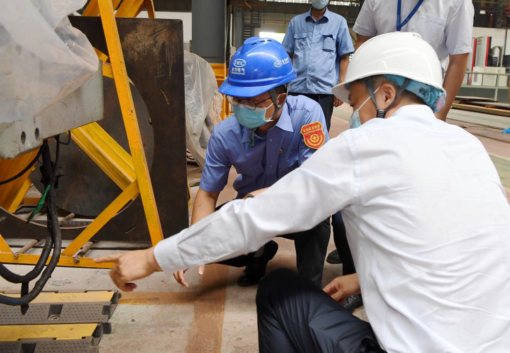 在东方电机重跨厂房,东方汽轮机重型二分厂、工业透平事业部,东方锅炉辅机容器车间、试验中心,东方宏华所属四川宏华,东方自控嘉陵江路园区等地,俞培根一行主要针对吊装作业、高处作业、高温作业、喷涂作业、压力试验、危险化学品管理、相关方安全管理、应急值班值守工作等进行了全面细致的检查。