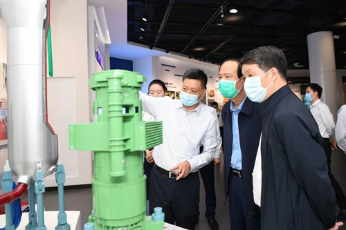 科技展示厅、氢燃料电池系统示范生产线,乘坐了具有自主知识产权的氢燃料电池公交车。