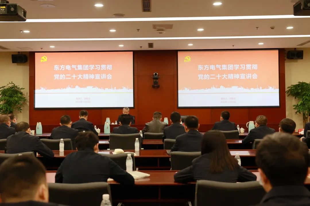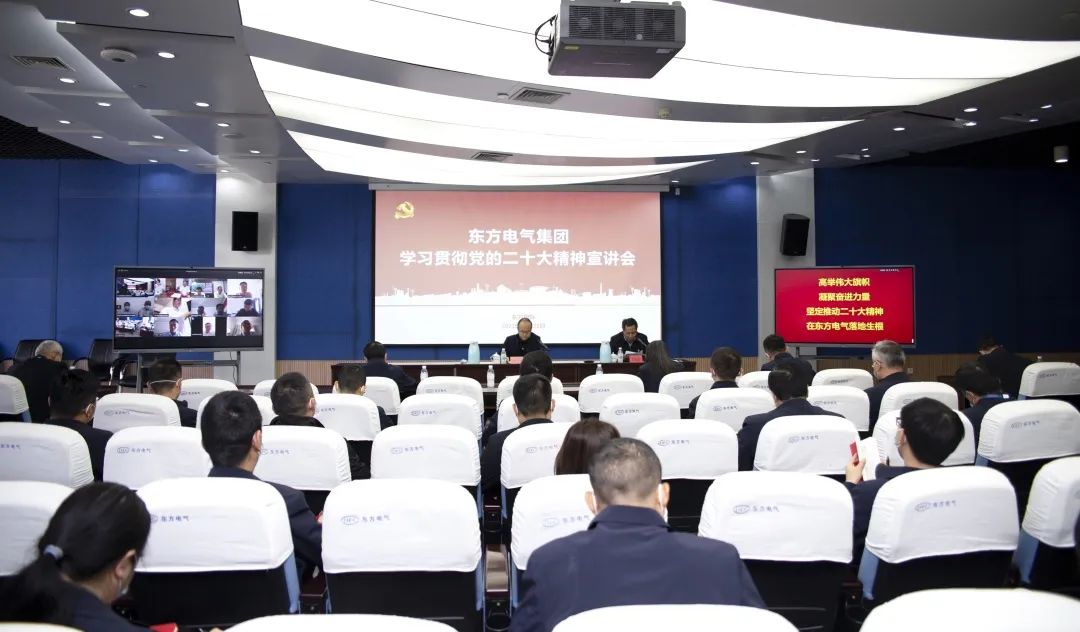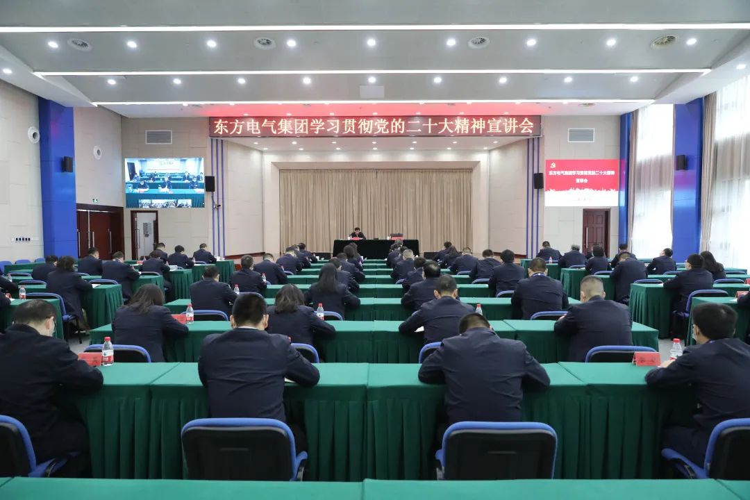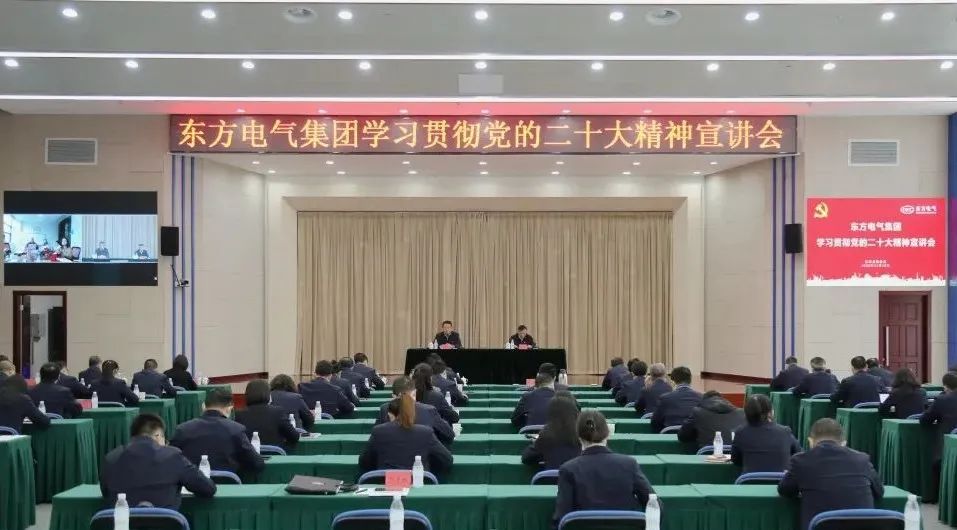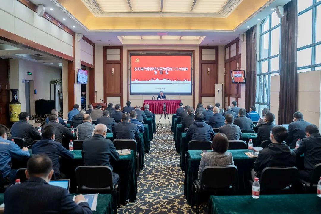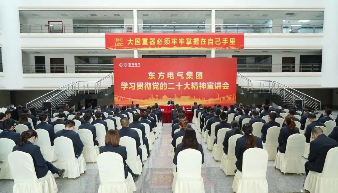11月10日,党的二十大代表,集团公司党组书记、董事长俞培根深入“绿色智造”一线,为东方电机党员干部职工宣讲党的二十大精神。俞培根从“七个深刻把握”对全集团结合实际深入贯彻落实党的二十大精神作出系统安排,特别是对东方电机在加快建设世界一流企业、提升科技创新支撑作用、加快绿色低碳转型发展、释放企业改革活力动力、以高质量党建引领保障高质量发展等方面提出明确要求。