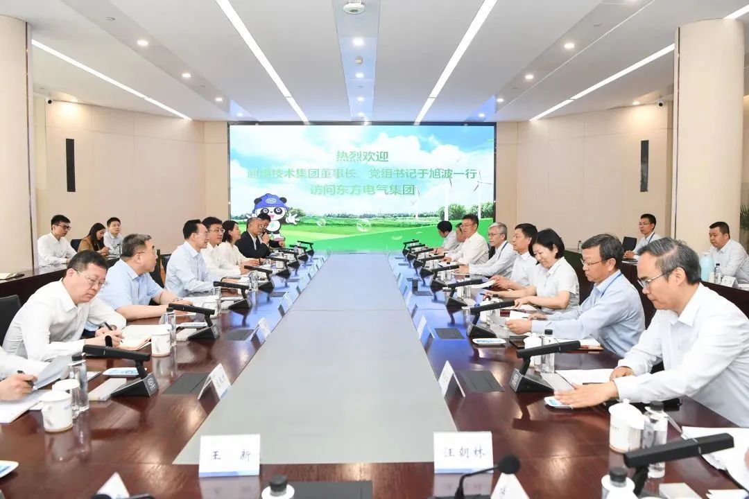 集团党组书记、董事长俞培根会见通用技术集团党组书记、董事长于旭波,双方就进一步加强科技创新、产业协同进行深入交流。集团公司党组成员、副总经理张彦军,通用技术集团党组成员、副总经理贾大风参加会谈。
