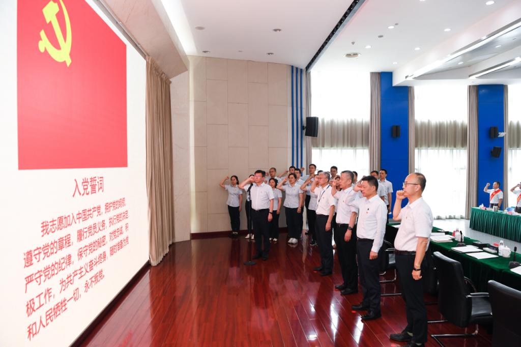面向党旗,新党员代表入党宣誓,全体参会党员重温入党誓词。会议发布了《集团公司党建与生产经营深度融合“四级五步五法”工作导则》,表彰了集团公司“东方心”党建与生产经营十大融合项目和十大融合模范。