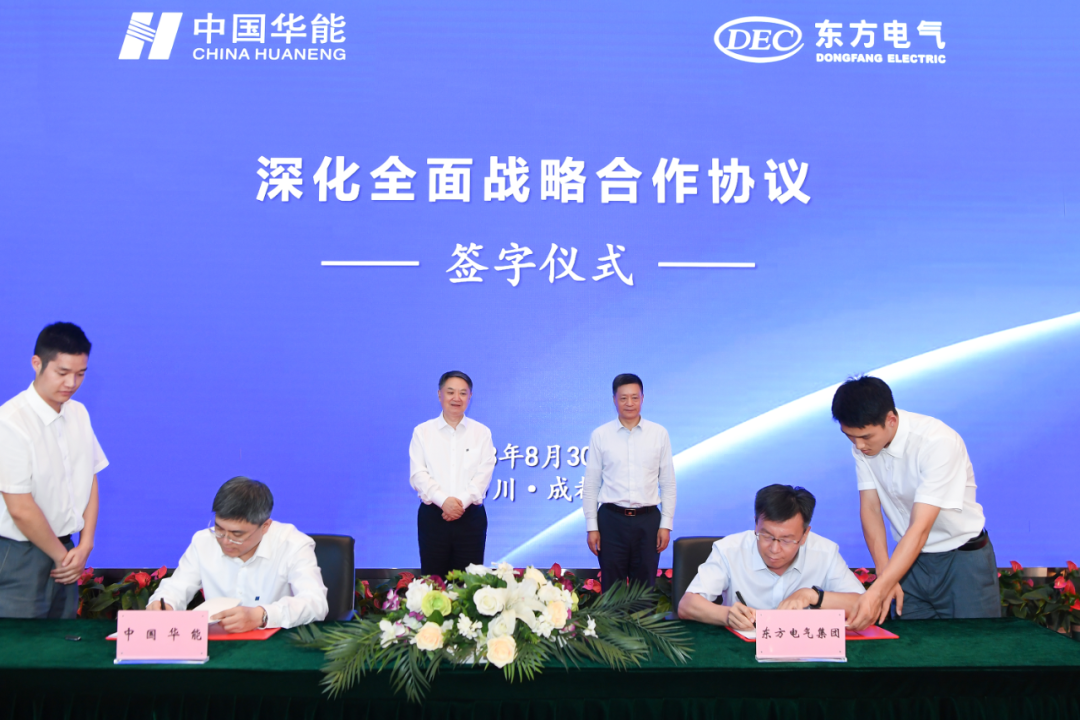 与中国华能集团有限公司在蓉签署深化全面战略合作协议。双方将坚持以习近平新时代中国特色社会主义思想为指导,认真落实国家战略,在更多领域、更深层次、更全方位开展合作,实现双方“十四五”发展战略对接,共同引领推动高效清洁能源行业高质量发展,助力国家“双碳”战略目标实现。