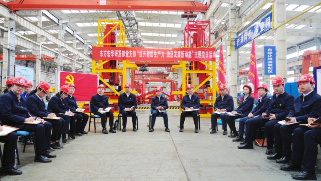 集团党组书记、董事长俞培根参加联系基层党支部——东方宏华研发部党支部“提升新质生产力,激活发展新动能”主题党日活动。研发部党支部党员代表、青年代表和党外人士代表参加活动。活动采取沉浸式与互动式相结合的方式,在东方宏华零部件车间现场开展。