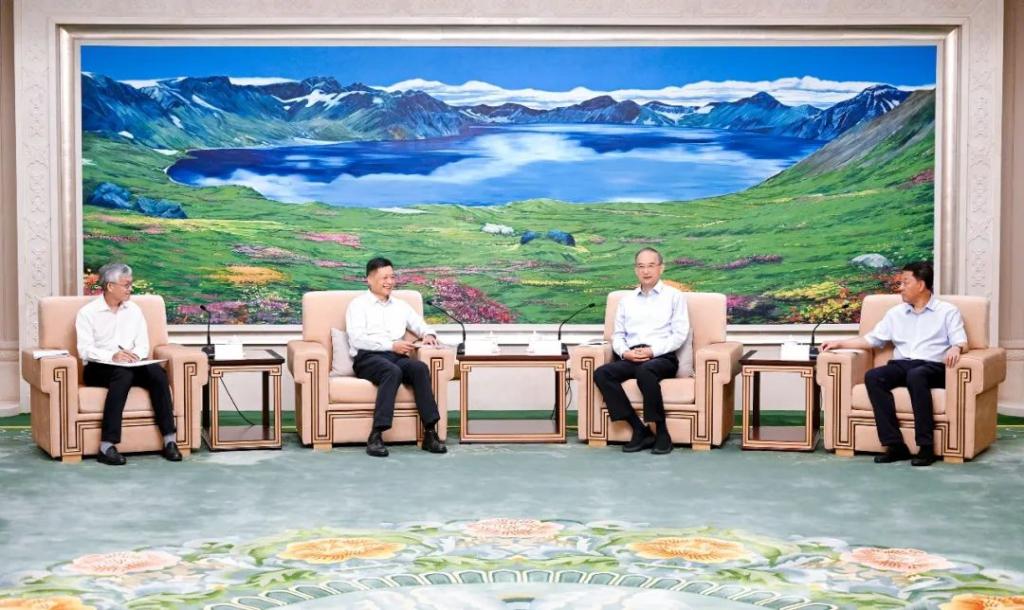 集团党组书记、董事长俞培根,总经理、党组副书记张彦军在长春与吉林省委书记黄强,省委副书记、省长胡玉亭进行座谈交流。双方就全面落实新时代推动东北全面振兴座谈会会议精神、进一步加强央地合作、深入推进战新产业高质量发展等方面进行深入交流。