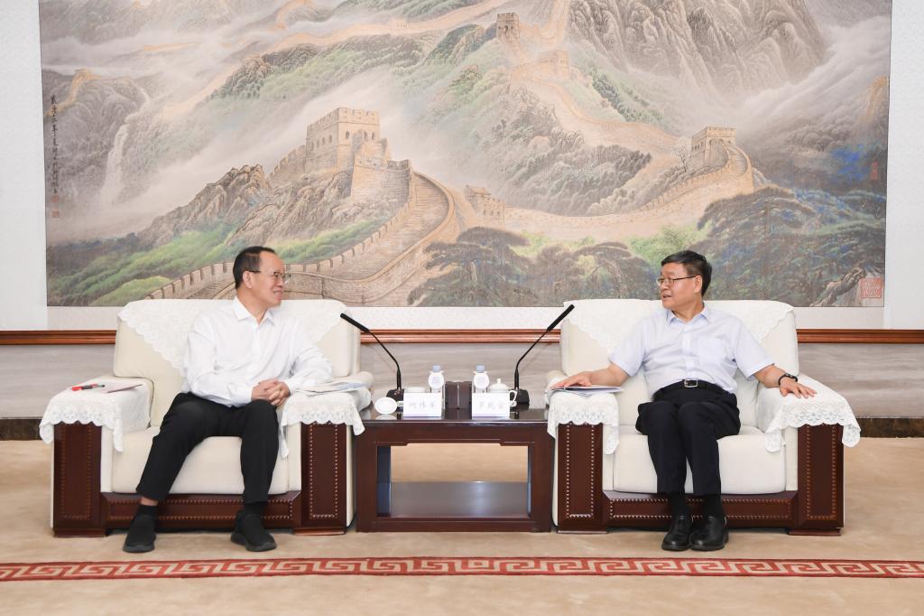 集团党组书记、董事长罗乾宜热情接待了何伟军一行,双方就科技创新、招生就业、人才培养进行深入友好交流。集团公司董事、党组副书记张少峰参加会谈。
