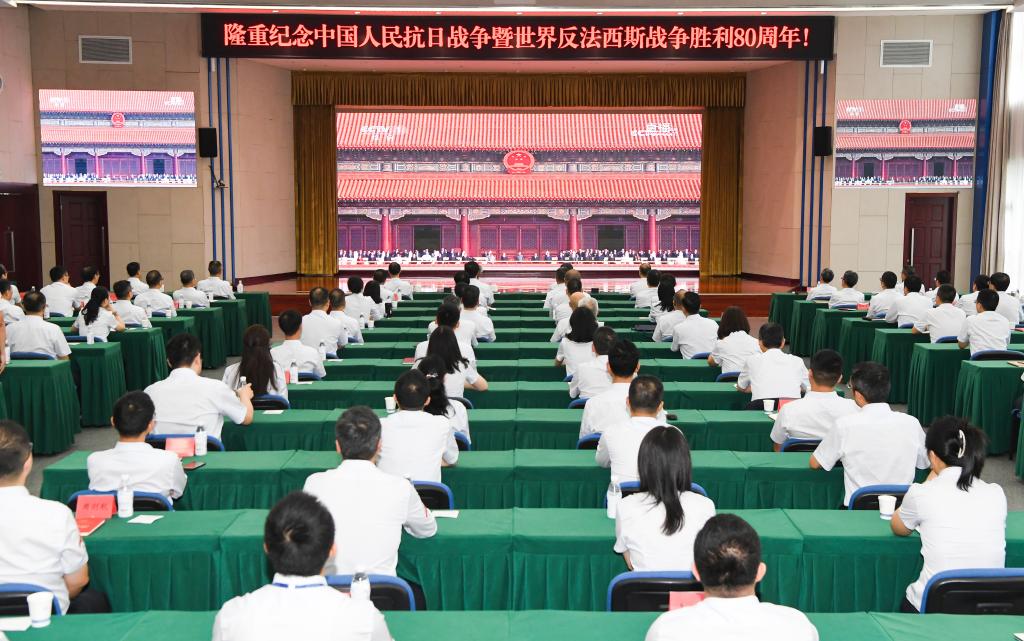 集团两万余名领导干部、党员、统战人士、团员青年、专家劳模、职工群众等怀着激动的心情,在全国各省市自治区及境外工程项目现场的200余个会场,通过电视、互联网等方式,同步收听收看纪念中国人民抗日战争暨世界反法西斯战争胜利80周年大会,认真聆听习近平总书记重要讲话。