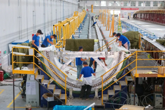 集团在木垒建成新能源高端装备制造基地,借助当地“签约即生根、落地即奔跑”的高效服务,实现当年签约、开工、投产的“木垒速度”,年产400万千瓦风电主机与叶片的产能迅速落地。