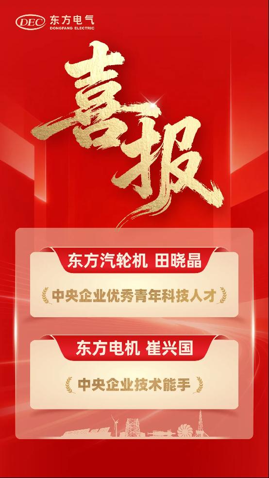 集团2人被授予表彰,东方汽轮机田晓晶获评第二届中央企业优秀青年科技人才,东方电机崔兴国获评第二届中央企业技术能手。